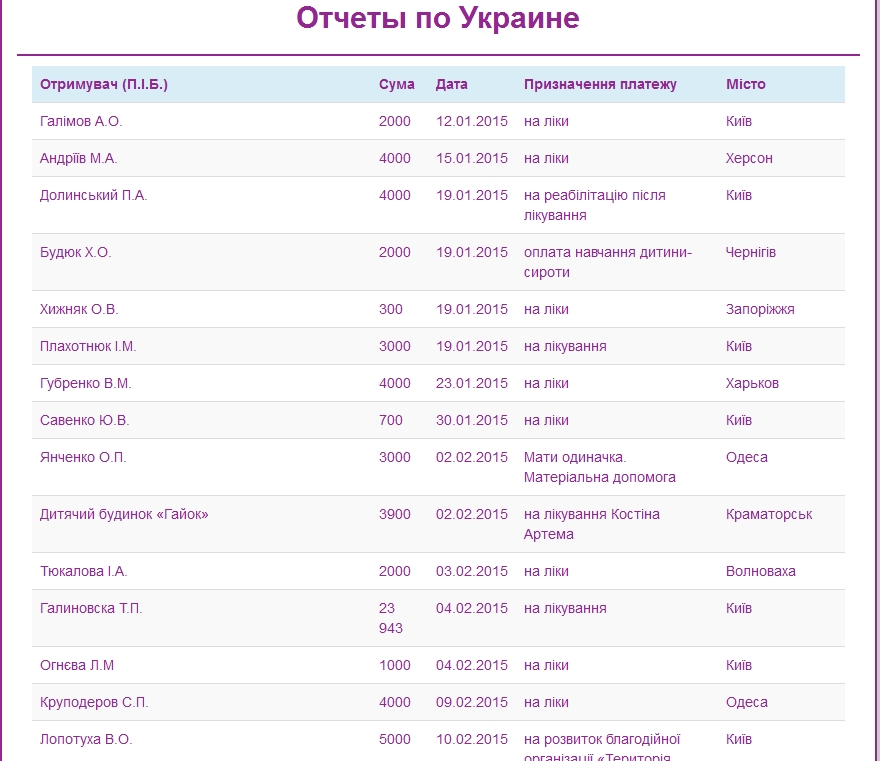 Пожалуй, один из самых скандальных фондов в Украине. По первой же ссылке попадаем на рассказы о коррупции. Они зарегистрированы официально. Но. К примеру, во Львове родители ребенка с редкой болезнью обратились в этот фонд с просьбой о помощи. «Ежи» сначала вообще отказали, но потом всё же взяли все копии документов о болезни ребёнка. Время шло, а деньги всё не поступали. Родители снова обратились в фонд, и им выдали 5000 гривень вместе с отказом от дальнейшего сотрудничества. Мол, помогать не хотят. Как же был удивлён отец семейства, увидев через несколько недель фото своего сына в руках у волонтёров и астрономическую сумму необходимой сыну операции – сто тысяч евро. На самом деле, на операцию была необходима лишь четверть этой суммы, и это официально указывалось в документах, которые подали в фонд. Финансовая отчётность фонда тоже выглядит странно. Данные есть только о расходах за прошлый год. А вот о поступлении средств ничего не сказано. Потому все мероприятия, которые организовывает фонд «Ежи», похожи на банальное отмывание денег. В Нововолынске журналистка провела интересное расследование и узнала, как скрывают свою деятельность волонтёры из «Ежей». То же самое было в Запорожье и Тернополе.