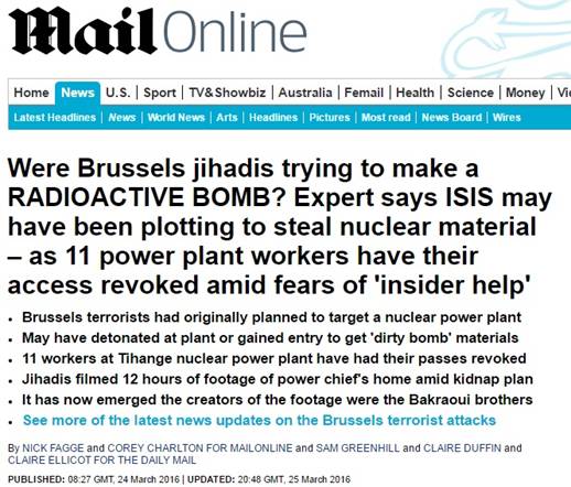 В предсказания Кассандры, дочери царя Трои Приама, никто из соотечественников не верил. Но Троя погибла и все несчастья, которые напророчила Кассандра, пали на головы тех, кто над ней смеялся. В современном мире в роли пророчицы выступают эксперты по вопросам ядерных вооружений и журналисты. Поверить в Апокалипсис действительно сложно, учитывая, что даже противостояние США и СССР не привело к ядерной войне. Но стремительный рост терроризма на планете и недавние события в Бельгии заставляют взглянуть на ситуацию иначе.