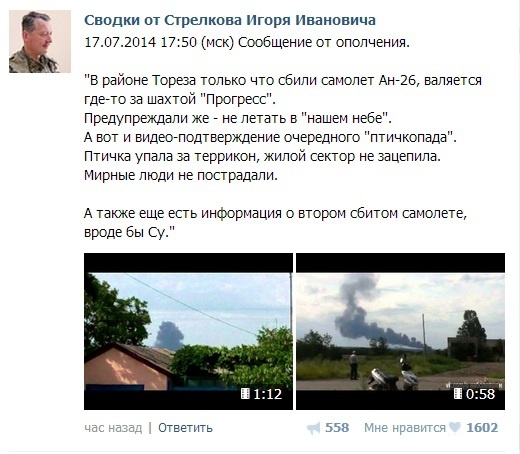 И скриншот публикации террориста Игоря Стрелкова (Гиркина) в социальной сети.