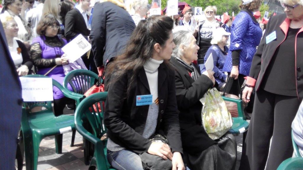 Возьмем, к примеру, Донецк. Ежегодный ритуал 9 мая здесь не меняется, сколько я себя помню. Официальные мероприятия проходят у памятника освободителям Донбасса в парке Ленинского комсомола, где перед трибуной для ветеранов расставляют ряды стульев. При этом каждый раз одно и то же количество стульев остается стабильно занято людьми. Только если в мои школьные годы там действительно сидели старики с боевыми наградами, то сегодня там сидят вместо них какие-то странные люди с непонятными побрякушками, которым на вид от 50 до 80 лет.