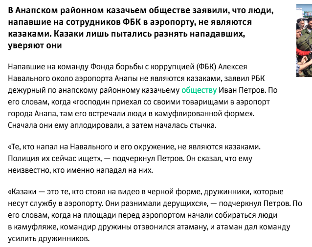 Ровно тот же сценарий, как и в Анапе. По мере того, как группа собирается в аэропорту (летели разными рейсами) полиция стремительно исчезает с будущего «места происшествия». Потом крепкие молодые люди оцепляют выход из здания вокзала так, что выйти можно, только уперевшись в группу казаков.