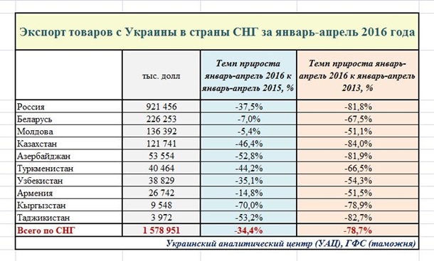 Почти секретная информация в таблицах об экспорте и импорте товаров с Украины и в Украину за январь-апрель 2016 года. Смотрите. Думайте.