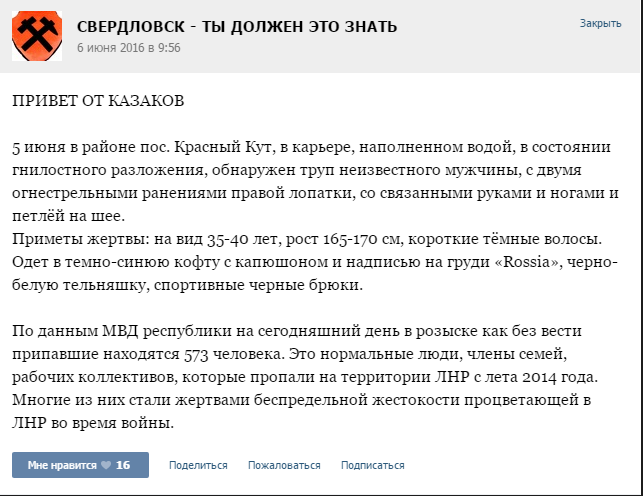 Примерно из таких сообщений стена группы состоит чуть менее, чем полностью. Ни один официальный сайт ЛНР и ДНР об этом, конечно, никогда не напишет.