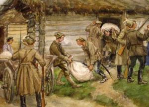 Через год войны мне попалась на глаза картина советского художника Ивана Владимирова «Погром винного магазина», которая была знаковой и знакомой, - революционеры 17-го грабили винный магазин. «Русский мир» не изменен. Его позиция насилия вечна.