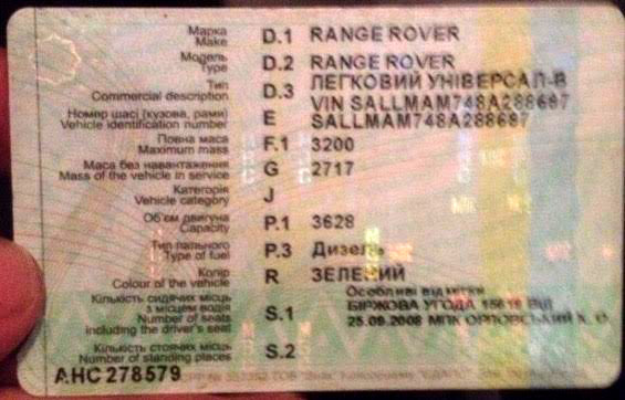 Далі цікавіше. Свідоцтво про реєстрацію Автомобіля Range Rover викликає у "копів" підозру, оскільки містить ознаки підробки. Тому була викликана слідчо-оперативна група, автомобіль евакуйовано на штраф-майданчик, а експерт з СОГ вилучив свідоцтво.