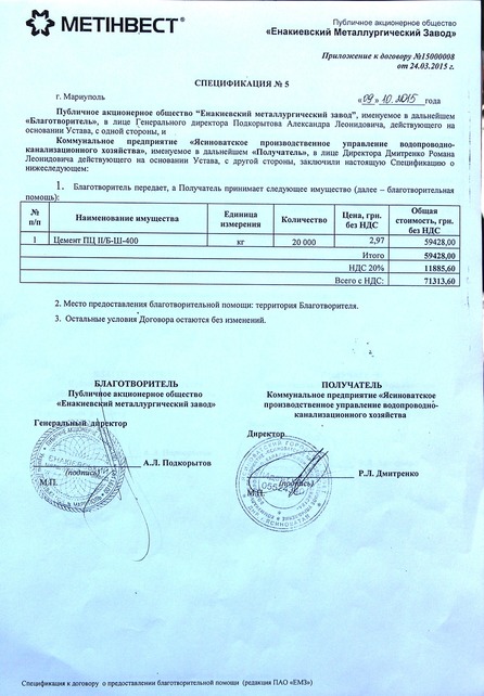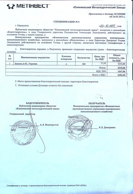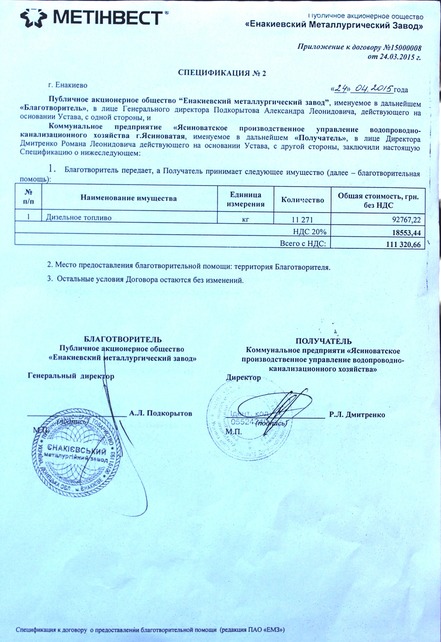 Помогают всяким. Есть несколько спецификаций, в которых указано, что конкретно передавал ахметовский «Метинвест» банде, захватившей Ясиноватую и оттуда по сей день продолжающей утюжить из артиллерии мирные кварталы Авдеевки.