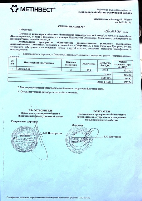 Бензинчик. Это уже для личного автотранспорта. Не пешком же товарищу Корсару ходить. Обратите внимание на даты. Это уже октябрь. «Благотворительностью» компания Ахметова занимается почти весь год.