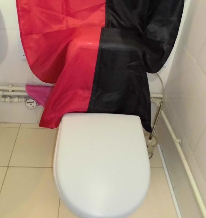 В общем, в итоге получается, что МГБ ДНР поломала донецкого патриота за осквернение флага Правого сектора. Кому расскажешь — не поверят. Мужчина пошутил, фотку выложил, похвастался, что флаг у него на унитазе, а к нему приехали и флажок этот к делу подшили. Слава Украине!