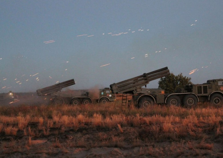 Реактивные системы залпового огня 9П140, или проще говоря "Ураганы", окрашивали небо в цвета боевого казацкого знамени не только днём, но и ночью. Зажигали в любое время суток, сдавая нормативы по развертыванию батареи и меткости стрельбы, а так же по зарядке "Ураганов" с транспортно-заряжающих машин 9Т452. Ведь цветовую гамму ночного неба следует поддерживать, дабы неповадно было посягать...