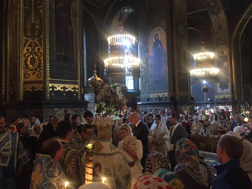 Экс-премьер и народный депутат, лидер партии "Батькивщина" Юлия Тимошенко сегодня, 21 сентября, окрестила свою трехмесячную внучку во Владимирском соборе в центре Киева.