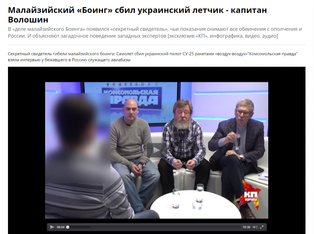 Поток адского бреда, который внимательно выслушивают три помойных брехуна, дополняется фотографией украинского летчика Волошина, которого пытаются объявить виновным в уничтожении пассажирского лайнера. Все это сообщает подставной персонаж, имя и лицо которого скрывают, чтобы в Украине не смогли доказать фейковость «источника». «Комсомольская правда» публикует целое интервью, в котором нет ни слова правды. Потрясающе!