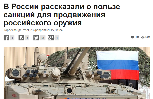 «Мы отмечаем повышенный интерес партнеров и заказчиков к нашей продукции. Это стало следствием применения санкционной политики в отношении России. И это нам выгодно», — заместитель гендиректора ОАО Рособоронэкспорт Сергей Гореславский.