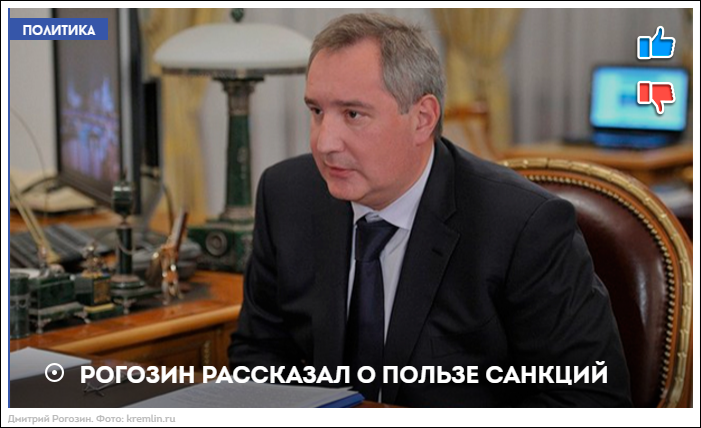 «Наша страна стала великой державой не тогда, когда стала продавать нефть и газ за границу, а когда стала развивать промышленность. Сегодня обращенные против нас санкции – это фантастический шанс обратить внимание на себя и заняться собственной промышленностью. Это шанс для новой индустриализации страны в целом», — вице-премьер России Дмитрий Рогозин.