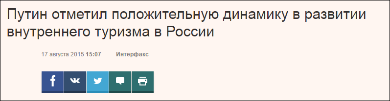 «Отдыхать во многих зарубежных странах стало, конечно, дороже, если переводить это на рубли. Но очевидно и то, что в самой отечественной туристической индустрии произошли позитивные изменения... Многие регионы всерьез занялись развитием туризма, активно строятся и реконструируются туристические комплексы, сопутствующая инфраструктура... Достаточно вспомнить про Сочи, который стал всесезонным курортом, без всякого преувеличения, мирового класса», — Владимир Путин.