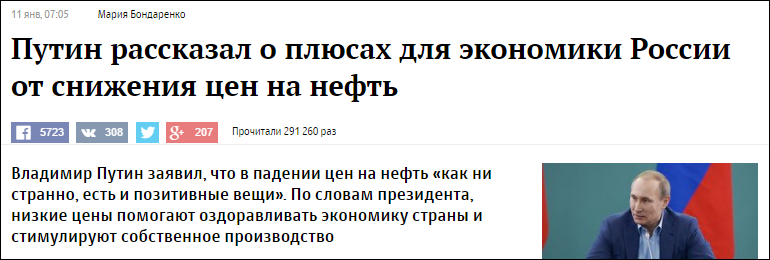 «Когда цены на нефть высокие, нам очень трудно удержаться от использования нефтяных доходов на текущие расходы. И у нас ненефтегазовый дефицит вырос, на мой взгляд, до очень опасной черты. Теперь мы вынуждены его понижать. И это оздоровляет», — Владимир Путин.