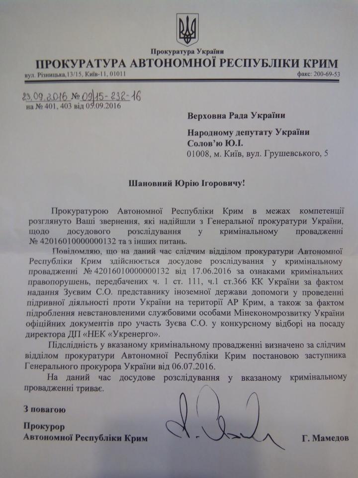 Ну і Зуєв щойно оголосив на комітеті, що справу проти нього ініціював особисто Кононенко. На одне з наступних засідань наш комітет запрошує міністра енергетики Насалика пояснити, що відбувається з цим призначенням.