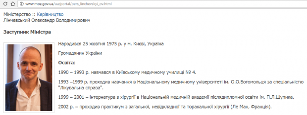 И тут настало время познакомиться с чиновником, которому можно иронично сказать "спасибо" за то, что государство не хочет по-настоящему помогать раненым защитникам, предлагая им легкий путь ампутации. Александр Линчевский - замминистра здравоохранения с 31 августа 2016 года. Я хочу, чтобы этого господина все знали в лицо.