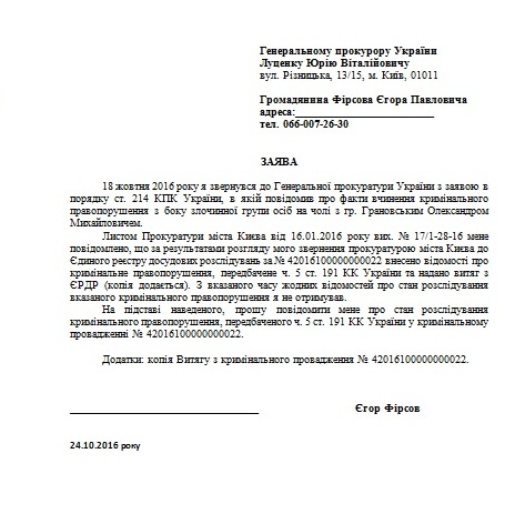Хотя возможно я ошибаюсь, и Юрий Луценко вот вот внесет в Раду требование о лишении Гановского неприкосновенности. Ведь Грановский утверждал, что летал на Кипр с Луценко для помощи Генпрокуратуре. Я могу ошибаться, но может он начал сотрудничать со следствием и сдает подельников)) Вобщем, я решил разобраться в ситуации и напомнить компетентным органам об их прямых обязанностях, и написал запросы в те же инстанции с одним простым вопросом: "Что было сделано за полгода?". Ответы жду с нетерпением.