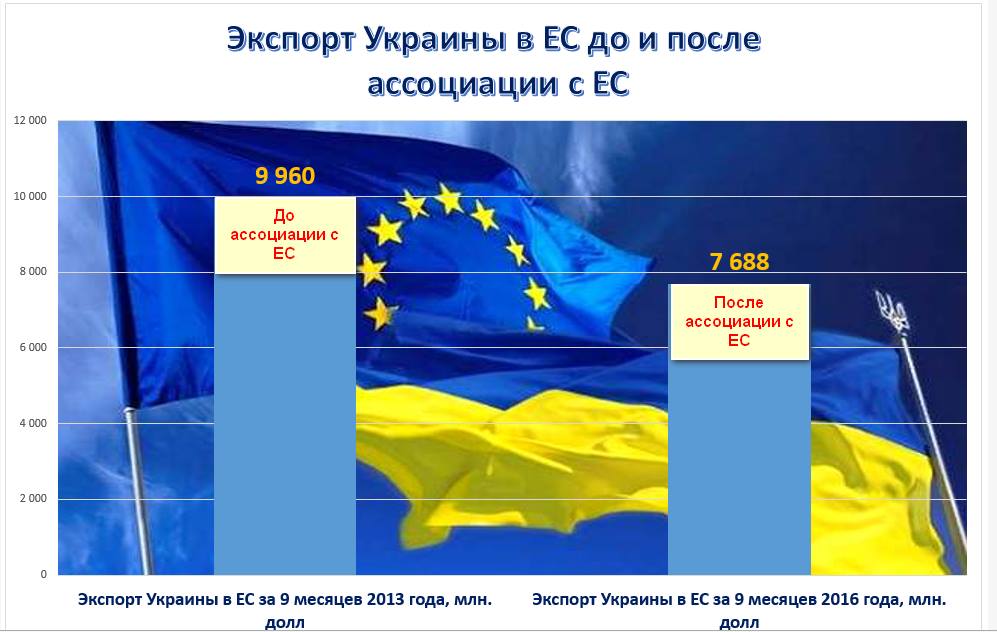 Многие говорят, что Майдан делали для того, чтобы заставить Януковича подписать соглашения об ассоциации с ЕС. Соглашение с ЕС подписали и теперь можно посмотреть, как вырос экспорт Украины в ЕС после этого соглашения.