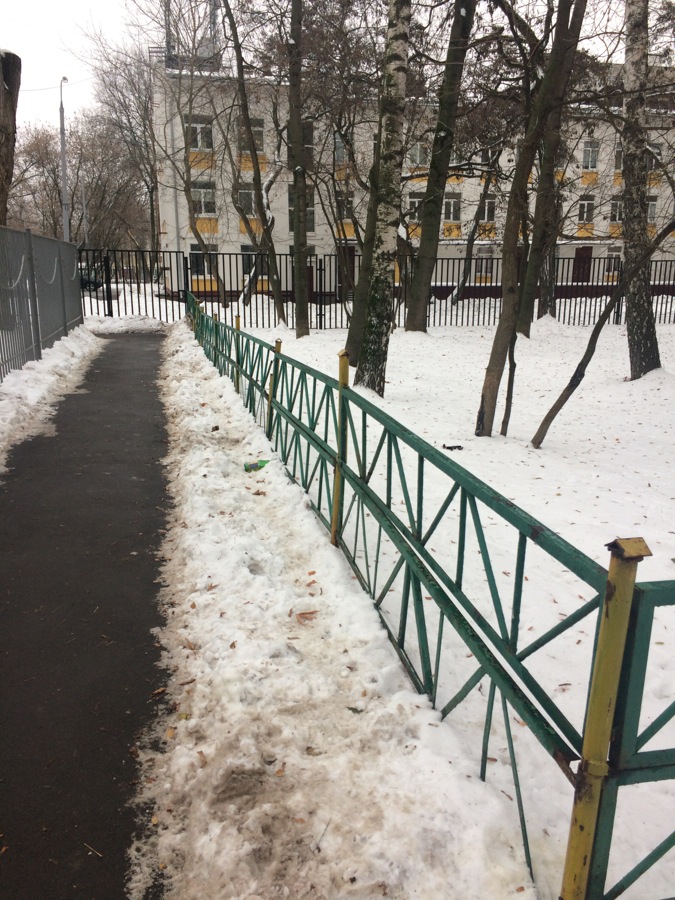 Моска, ВАО, ул. Халтуринская, между домом 7А, корп. 5 и Детской поликлиникой №28. Вместо того, чтобы в месте, где проходит "народная тропа", организовать дорожку для людей, тут со всей заботой о людях был построен двойной забор.