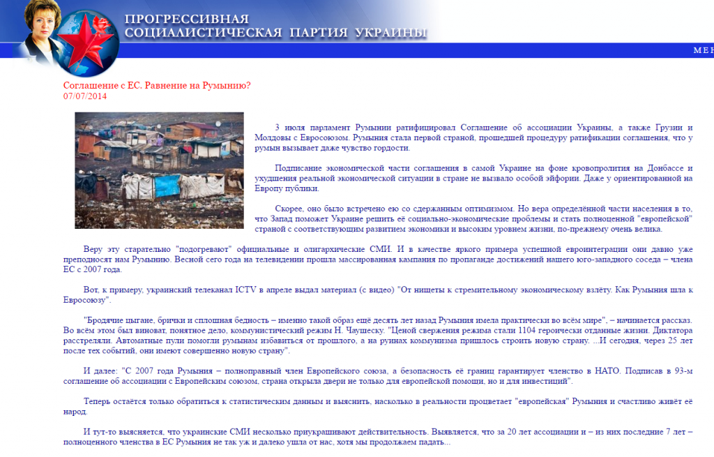 Долгое время стереотипы украинцев о Румынии укрепляла российская пропаганда, которая изображала Румынию, Болгарию и другие страны Восточной Европы жертвами евроинтеграции. Делалось это в том числе в назидание Украине — мол, от ЕС одни убытки и нечего вам там ловить. Жизнь в Румынии россияне старались изображать в черных красках, игнорируя позитивные новости из этой страны и делая упор на негатив.