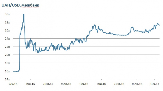 Если в 2015 году курс доллара колебался в пределах 15,8-33,8 грн за долл, то уже в 2016 году колебания были гораздо мягче: 21-27,4 грн за долл. В 2017 году ожидаются колебания в еще более узком диапазоне: 26,5-28,5 грн за долл.