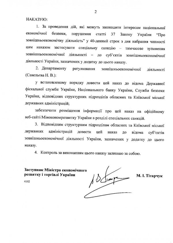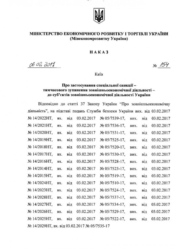 Третім етапом стало намагання повністю зупинити зовнішньоекономічну діяльність 16 компаній. Це сталося 6 лютого, коли за поданням СБУ було видано наказ Міністерства економіки про накладення санкції, підписаний заступником міністра Степана Кубіва. Свої листи-вимоги СБУ супроводило цинічними аргументами: "СБУ в рамках захисту економічного потенціалу України, а також попередження, виявлення, припинення та розкриття злочинів проти миру та безпеки людства, корупції (...) викрито факт порушення норм законодавства у вигляді фінансування тероризму..."
