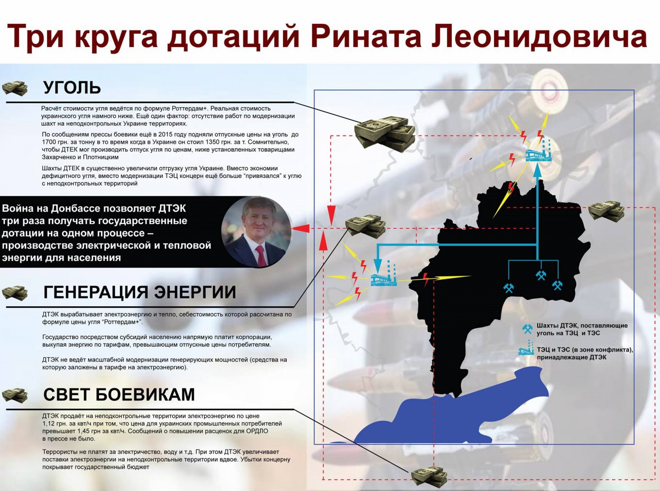 Тут можно возразить, что, мол этой энергией снабжаются предприятия, уплачивающие налоги в украинскую казну. Да, ИСД, ДТЭК, СКМ. То есть те же активы господина Ахметова, покупающие электроэнергию по заниженным ценам. Выгодно!