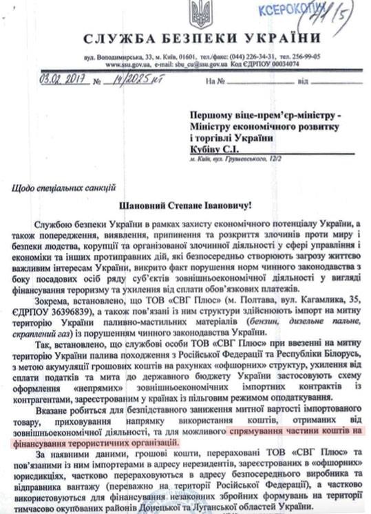 В моем распоряжении есть письма, подписанные лично Демчиной. Он как первый заместитель главы СБУ одновременно является руководителем управления борьбы с коррупцией и организованной преступностью. Именно по его представлению Минэкономики в феврале ввело санкции против 16 компаний, поставлявших в Украину сжиженный газ, подлежавший реализации автомобилистам через сети заправок.