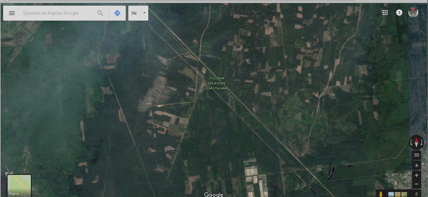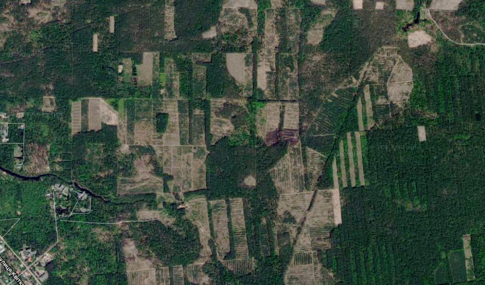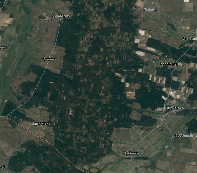 Ответ нашёл на тех же спутниковых снимках. Вот как выглядит лес на север от Пущи Водицы: