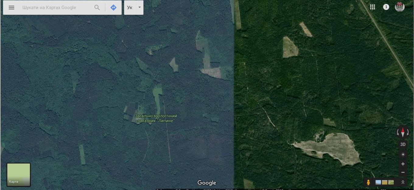 После разговора взглянул я на карту Украины от Гугл. Спутниковые снимки там, естественно прошлогодние, но и они показали весь масштаб проблемы. Лес уже не рубят: процесс можно сравнить с нашествием саранчи. Если сравнить снимок луга, поля после «работы» упомянутого насекомого со спутниковым снимком украинских лесов – разница будет заметна мало.