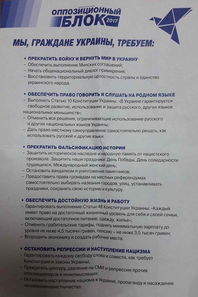 То, что Оппозиционный блок ведет страну к повторению этого сценария, сегодня очевидно даже школьнику. В листовках регионалов сегодня ровно те же призывы, что и до войны, только приправленные Минскими соглашениями и требованиями остановить войну, которую сами регионалы и начали.