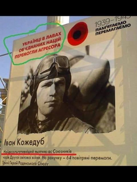 Що значить підкреслена строка внизу? Який до біса "ас союзників"?! Ще б написали - тричі герой ООН, яка створена була вже після війни. Аби не виглядати ідіотами треба всього лише знати історію власних героїв. Особливо тим, хто займається державною інформполітикою... Спеціально для бюджетних невігласів даю цікаву інформацію: