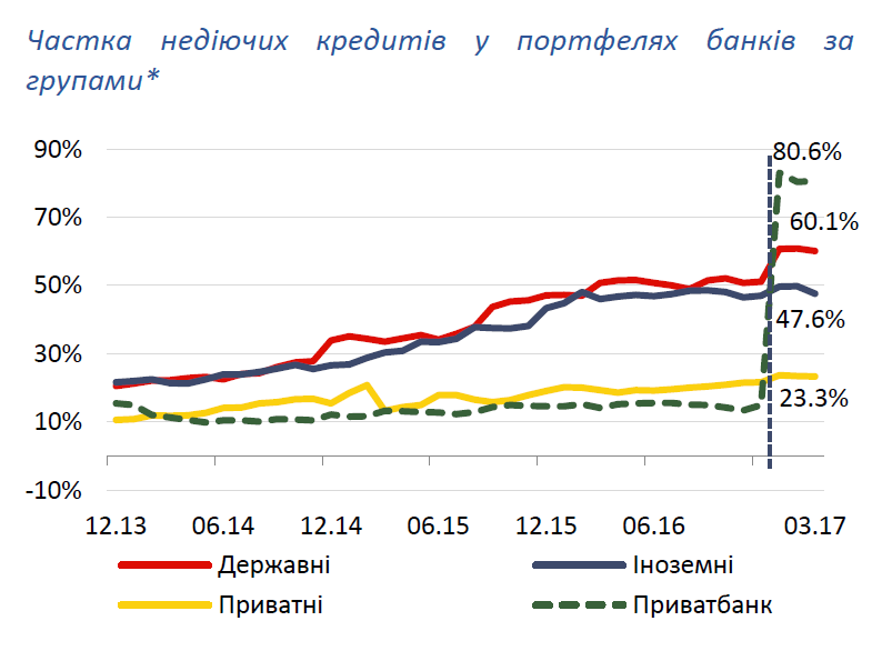 Получилось, что после "реформ Гонтаревой" количество проблемных кредитов не уменьшилось, а увеличилось. И обращаю Ваше внимание, прежде всего в госбанках (даже без учета Приватбанка) и банков, где собственники нерезиденты. Своей "очисткой" банковской системы Гонтарева фактически уничтожила банковскую систему. И теперь приходит надеяться, что новый глава НБУ или хотя бы и.о. главы НБУ Смолий хотя бы частично исправить ситуацию. Если ничего не сделать с проблемными кредитами, то новых кредитов вообще не будет, еще долго..