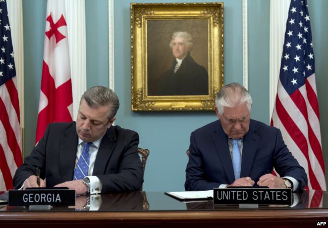 Наконец, 9 мая Государственный секретарь США Рекс Тиллерсон и премьер-министр Грузии Георгий Квирикашвили подписали Соглашение между США и Грузией о безопасности секретной информации. «Соглашение является важным событием с точки зрения сотрудничества между США и Грузией в сфере безопасности, – сообщил Госдепартамент после церемонии подписания. – Оно создает правовые основания для обмена информацией в сфере разведки и, в то же время, усиливает контртеррористическое сотрудничество между США и Грузией». Соглашение также усилит совместимость Вооруженных сил Грузии с военными службами государств-членов НАТО, будет содействовать усилиям Грузии по трансформации своих Вооруженных сил, и проложит путь будущим соглашениям между США и Грузией в сфере безопасности, отмечает Госдепартамент.