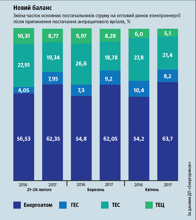 По прогнозам Минэнерго, в мае на антрацитовых блоках ТЭС будет выработано лишь около 6% электроэнергии, в то время, как раньше этот показатель достигал 35-40%. В настоящее время идут работы по переводу этих блоков на газовый уголь. Например, соответствующие работы на своих электростанциях (Приднепровской и Криворожской) в Днепропетровской области ведет ДТЭК.