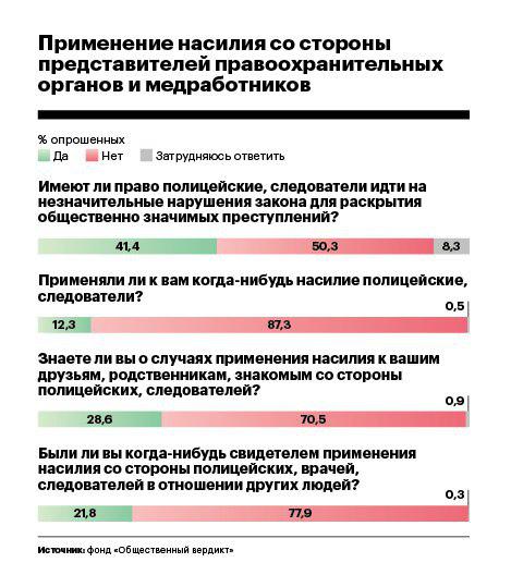 41,4% респондентов "разрешили" силовикам "идти на незначительные нарушения закона для раскрытия общественно значимых преступлений".