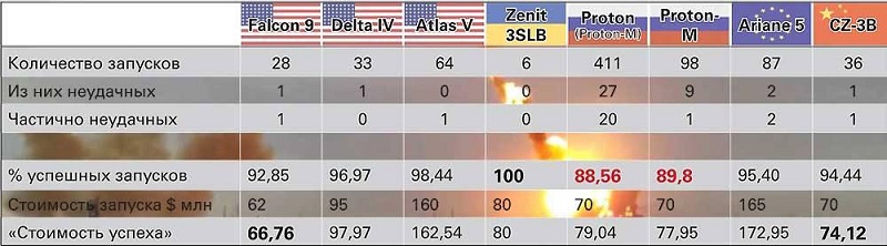 Сразу замечу, что реальный «процент неудач» в России выше — просто в «русскую статистику» международные организации включают запуски украинских «Зенитов» (пока безаварийные) и российских «СОЮЗов» с космодрома Куру во Французской Гвинее.