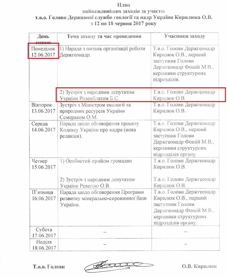 После этого дело пошло. Как раз накануне поимки преступников, Розенблат встречался с руководством Держгеонадр Кирилюком и Фощием, чтобы "порешать дела". Теперь всех прижали.