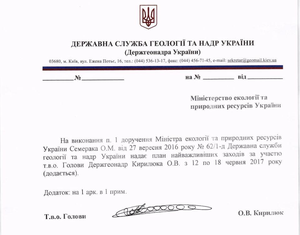 С осени 2016 года, одновременно с принятием постановления 1063 Кабмин стал упорно пропихивать в Держгеонадра новое руководство во главе с земляком Розенблата - бывшим регионалом Кирилюком. Долгое время назначить его не получалось, так как специальный конкурс не пропускал Кирилюка. Тогда, в мае 2017, его назначили в конце концов без конкурса, с нарушением процедуры.