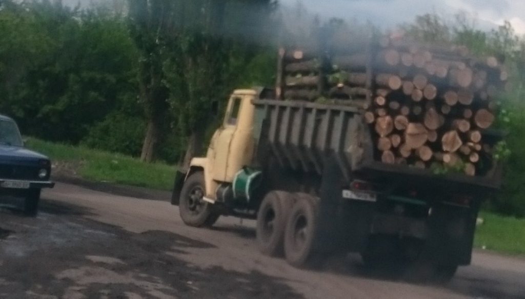 Грузовики, груженые лесом, также постоянно встречаются на дорогах. Краз на ДНРовских номерах. Расступись, мародеры едут!
