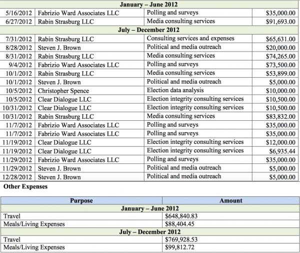 У своїх звітах Манафорт показав, що Партія регіонів не шкодувала грошей на свого консультанта. Лише в 2012 році, коли регіонали перемогли на виборах, витрати на перельоти Манафорта в Україну склали майже півтора мільйона доларів. Його проживання в київських готелях протягом року коштувало ще 200 тисяч доларів.