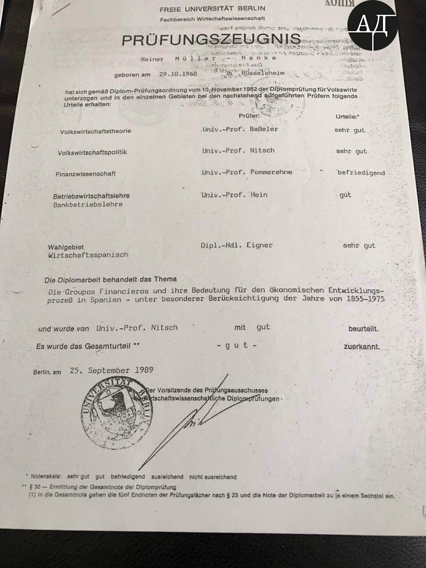 По информации акционеров, диплом об экономическом образовании немца - подделан. В наличии у него нет оригиналов документов об экономической специальности. Только ксерокопии.