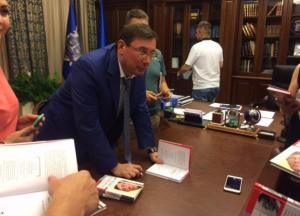 Кстати, пока я задавал вопрос, Луценко подозвал помощника и что-то шепнул ему на ухо. Как оказалось позже, Луценко попросил его принести документ с подписью Саакашвили, изъятый при обыске Тимура Нишнианидзе (экс-генконсула Грузии в Одессе). Это было поздравление Нишнианидзе от Саакашвили с занятием новой должности.