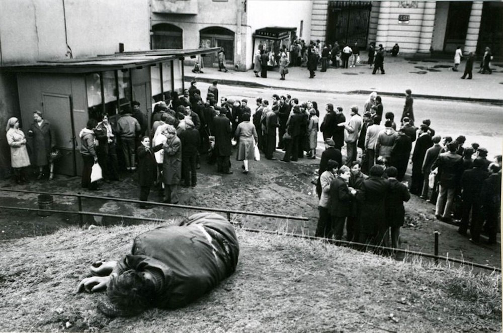 Фотоснимок 1980 года, тоже до "проклятой перестройки", те самые благословенные брежневские времена, которые столь любимы поклонниками СССР — ведь именно тогда, как известно, всем желающим раздавали бесплатные десятикомнатые квартиры, кормили лучшими в мире продуктами и бесплатно дарили по 10 автомобилей на семью.