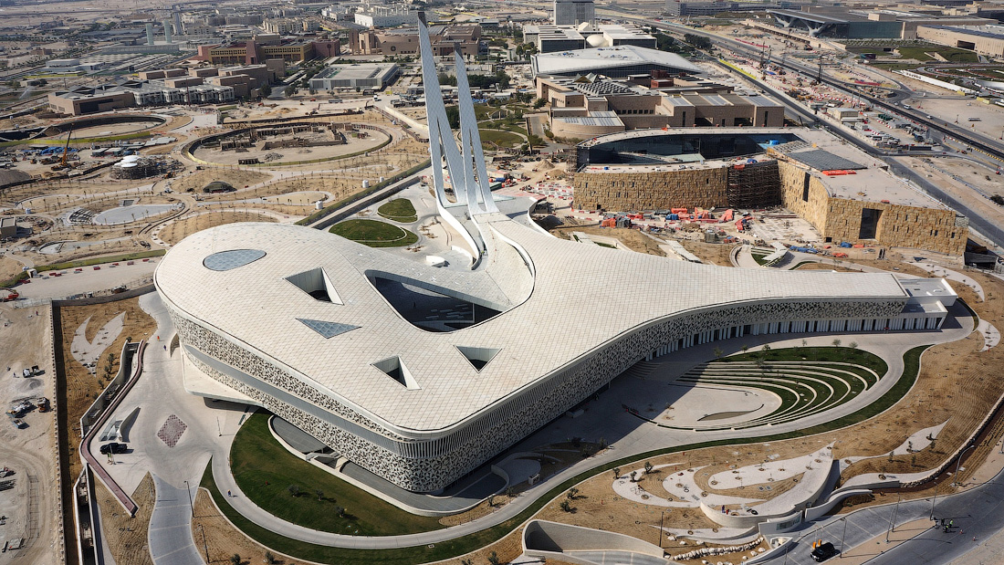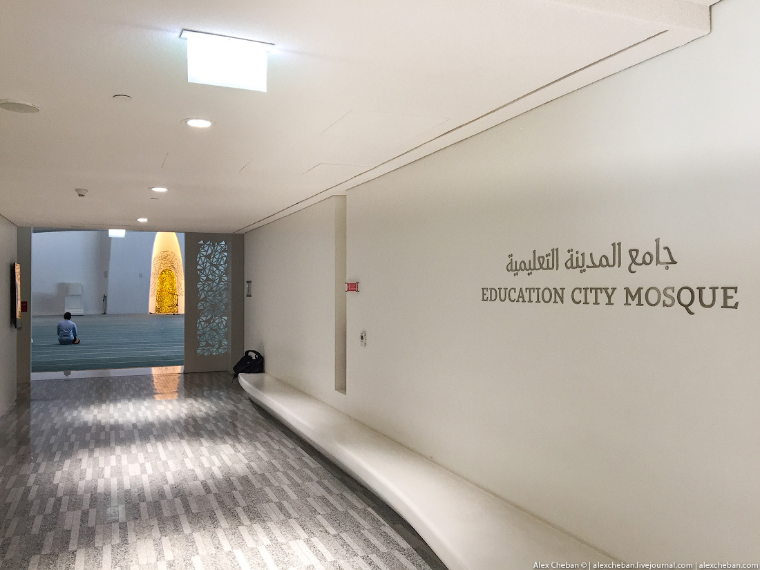 Яркий солнечный свет наполняет огромные пространства, белый цвет стен и ни одного острого угла, ручейки и водопады прерываются пешеходными мостиками... Да, это мечеть! Я никогда бы не подумал, что мечеть может иметь такую футуристическую архитектуру. Education City Mosque в Дохе. Она находится на территории университетского городка, здесь же разместился и Факультет Исламских Дисциплин. Настоящий шедевр современной архитектуры, притягивающий внимание даже на фотографиях и будоражащий воображение в реальности.