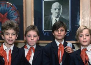 Точно так же, как и в детском саду, в советской школе навязывали "корпоративные ценности" и учили ходить строем. Все должны были носить одинаковую форму и галстуки, проходя соответствующий "обряд инициации". Образование строилось на принудиловке — левшей насильно переучивали в правшей, талантливых и одаренных детей совковые училки часто заклевывали до полуовощного состояния — "будь как все, не выделяйся, не выпендривайся!" Были популярны и расправы над "белыми воронами" — класс, состоящий из средненьких умов, поощряемый и управляемый бандой из 3-4 двоечников, мог всячески травить и издеваться над "отличниками и зубрилами" — то есть теми, кто хотел и мог учиться хорошо, много читал и т.д. Конечно, так было не везде — но случалось очень часто и при полном попустительстве учителей.