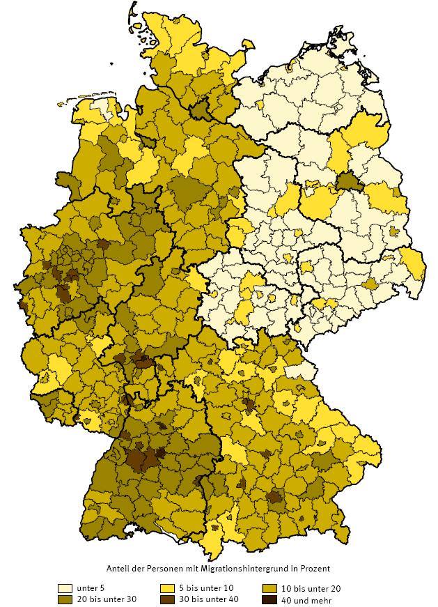 На первой карте (горчичного цвета) - расселение мигрантов в Германии.