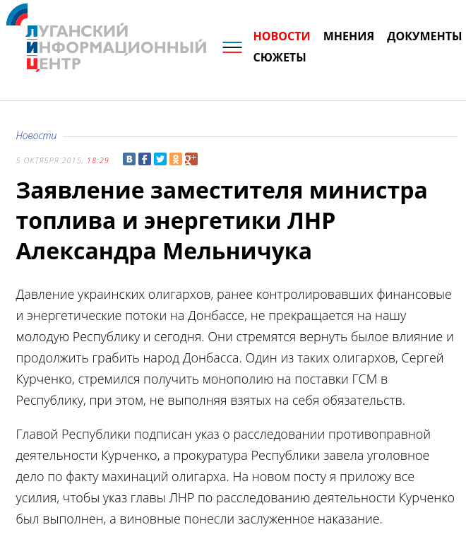 Польское издание Dziennik опубликовало статью о том, как уголь из ОРДЛО через Россию поставляется в Польшу. Журналисты выяснили, что доставкой угля в Польшу занимается фирма Doncoaltrade, которая еще в 2012 году была зарегистрирована в городе Катовице. Ее президентом и главным акционером является Александр Мельничук. Некоторое время он занимал пост «заместителя министра угольной промышленности ЛНР». С самого начала войны Мельничук со своим братом курировал вывоз угля из «ЛНР» в Украину, до тех пор, пока такие закупки не прекратились из-за блокады.