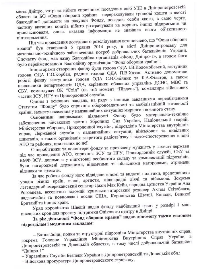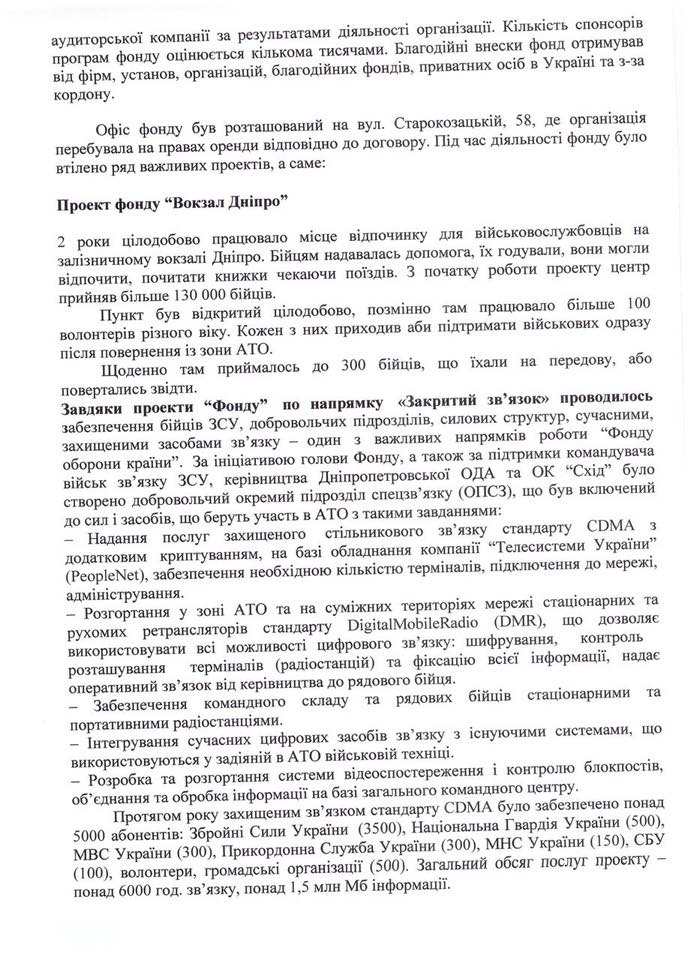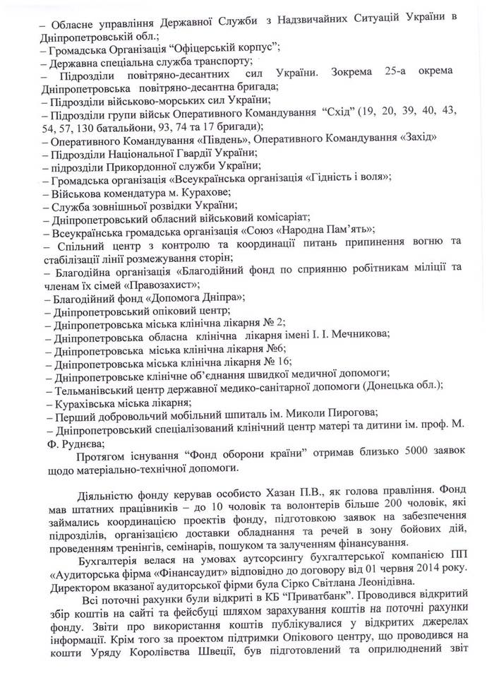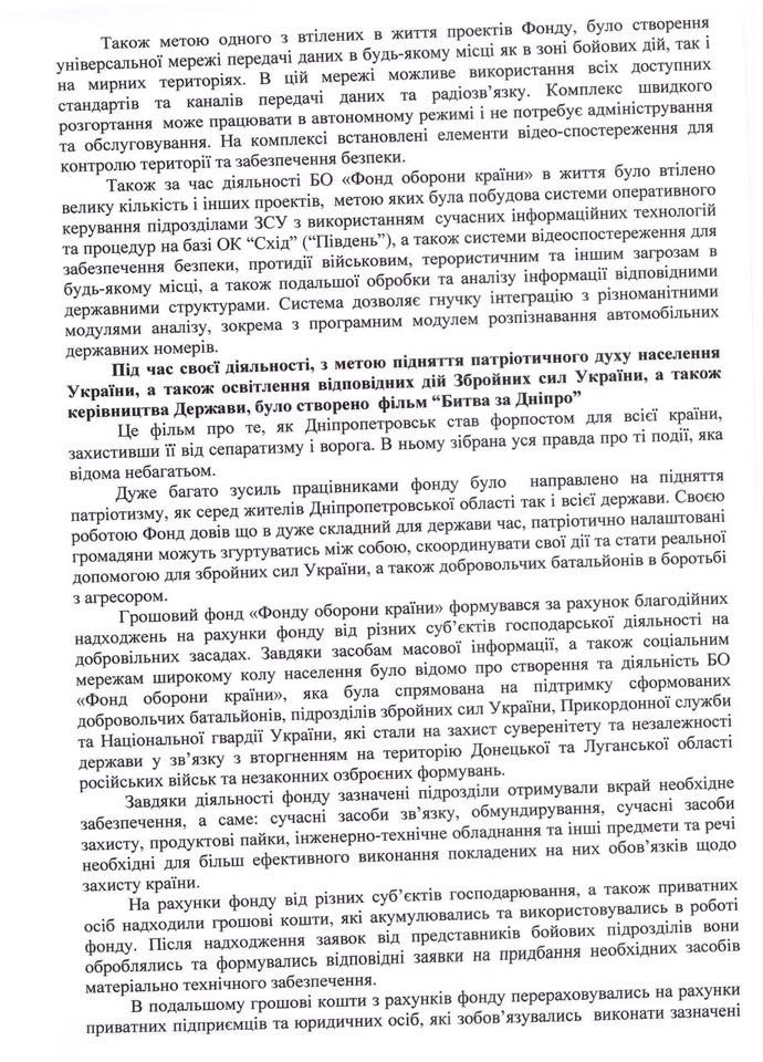 В 2014-ом году при содействии Днепропетровской ОДА был создан «Фонд оборони країни», который наполняли украинские и иностранные инвесторы.